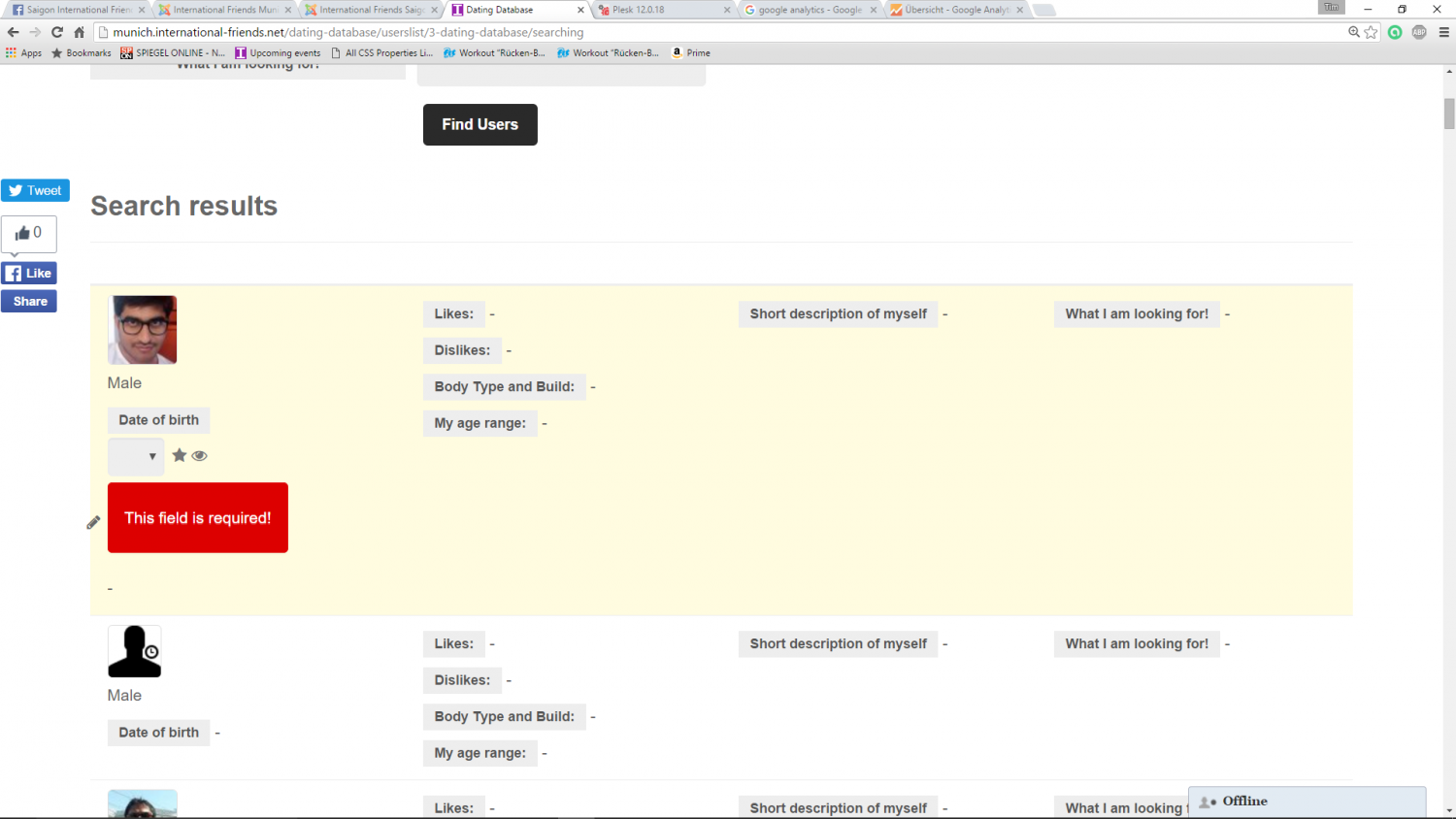 Also, somehow AJAX userlist editing cannot deal with required fields anymore. The field that I have edited in the below picture (taken after the edit) is a date field.