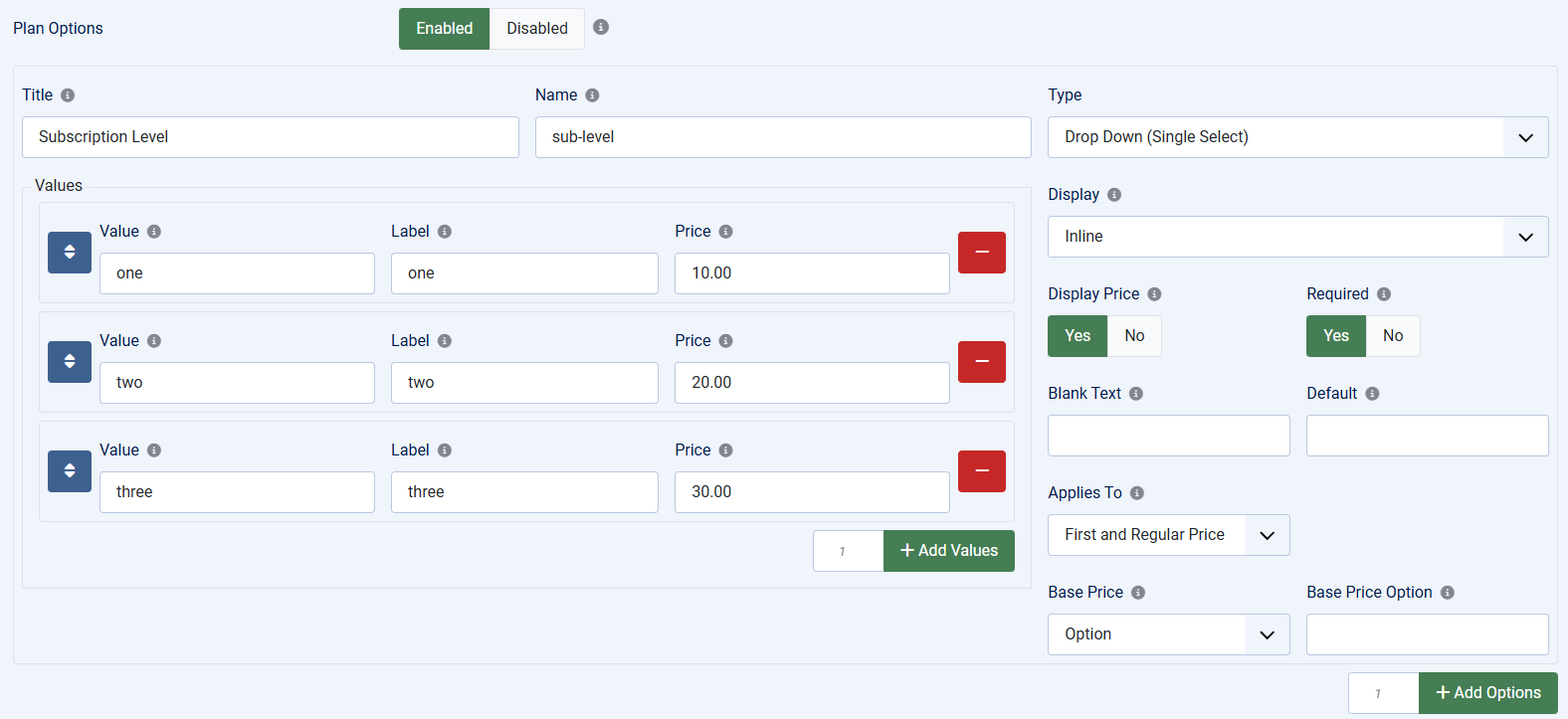 I'm simplifying the workflow for a client as we have a plan for each sub level currently. The plan is to have a single plan and reg form with pricing options for each sub level.