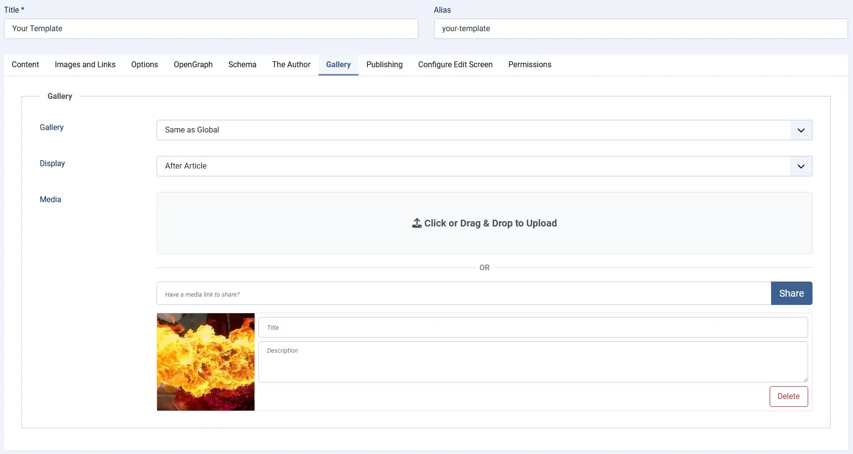 This also lets you override per-article what gallery is used and adjust its positioning. The positioning also supports inline positioning allowing you to use a shortcode to insert the gallery in the article wherever you like. This now provides THE most powerful media gallery available to Joomla for all your articles!