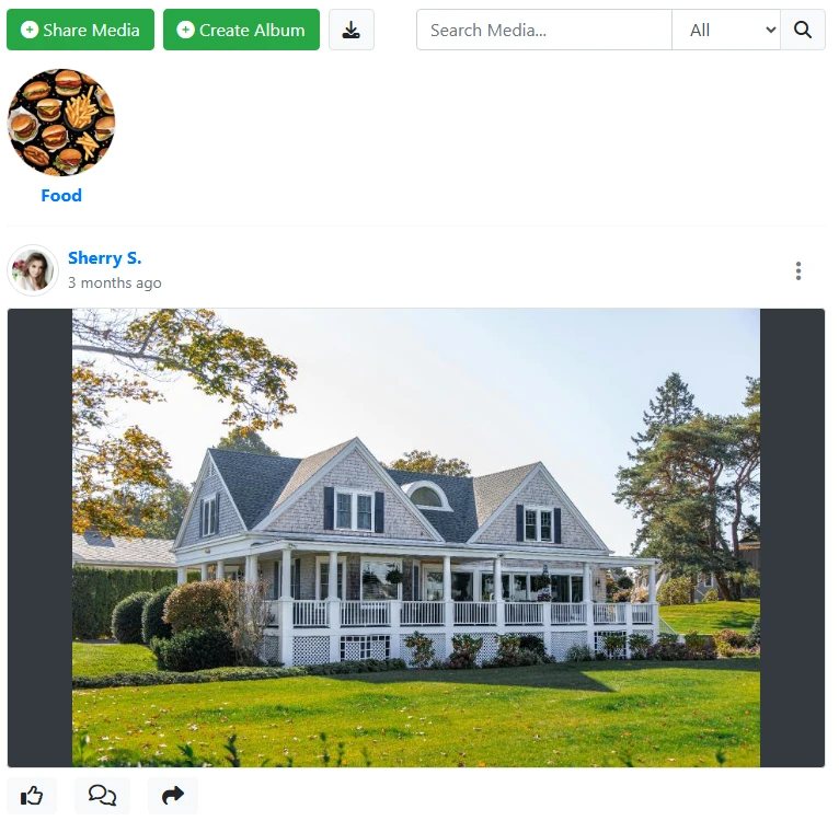 The cards template is heavily inspired by Instagram giving a nice infinite scrolling feel. Inline likes, modal commenting, and inline sharing integrated nicely from CB Activity provide a fully interactive gallery feed at your disposal. Includes scrolling autoplay of video and audio media as well.