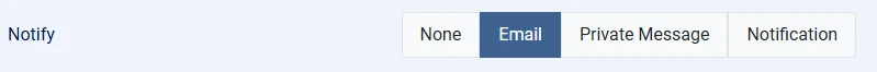 Finally we come to the next big thing. Built in support for CB Activity Notifications. All notification parameters, except Albums, can be configured to Notification. When configured to Notification instead of sending a private message or email it will log a CB Activity notification.