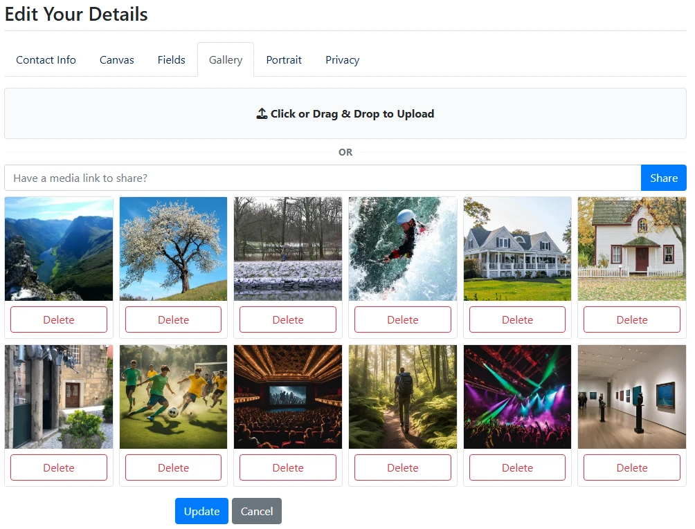 We're not done yet. Field edit of galleries is also now available. If your gallery field is configured to display on profile edit then your users can now conveniently upload and manage their media directly from profile edit.