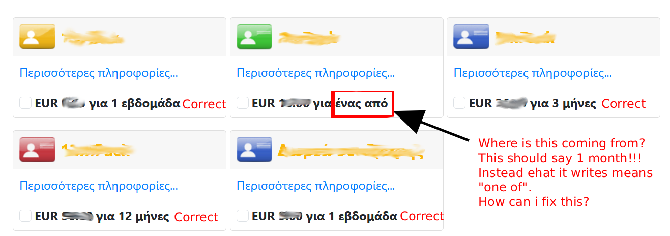 My guess is it's a translation issue then. Probably an error in your language files. If you're using a language plugin provided by us they're entirely translated by the community so someone may have translated part of the pricing incorrectly. Try changing back to [AUTOMATIC] then switching to English language and see if it displays correctly.