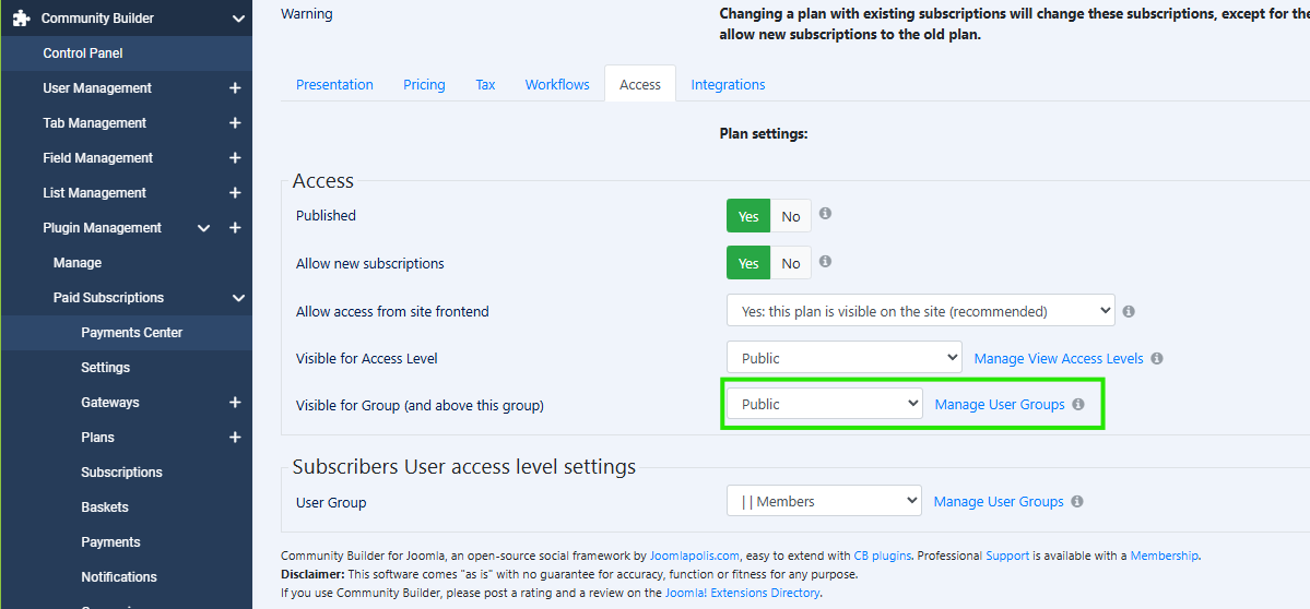 You should still see that unless you unpublished the tab in CB > Tab Management or that account has no plans available to them. So it's possible you've a configuration issue with your plan preventing access.In a much earlier version of this website (J1.6 / CBSubs) the user always had a subscription tab shown on their profile and a button to upgrade / renew as necessary. I can't see that now. Am I missing a configuration for this?