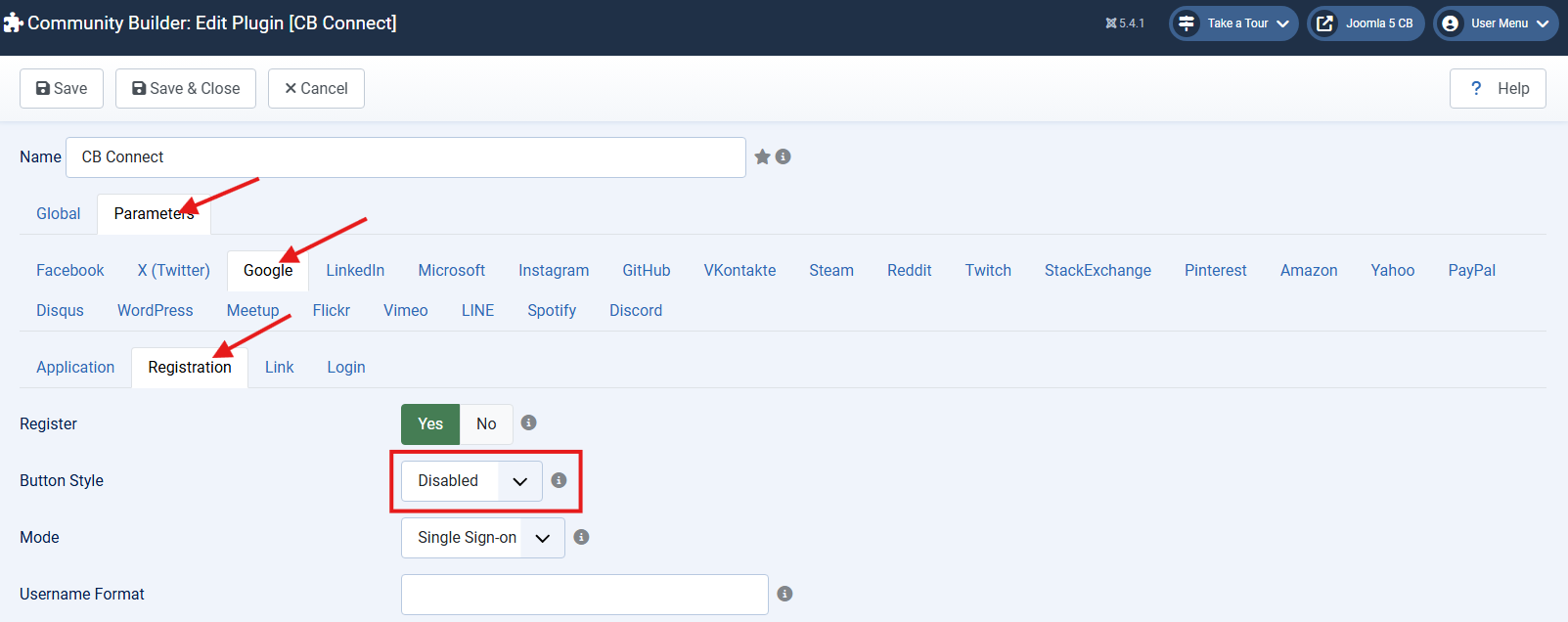 Is there any way to have the CB Connect Sign In with Google on the CB Registration form as well as the Login module?