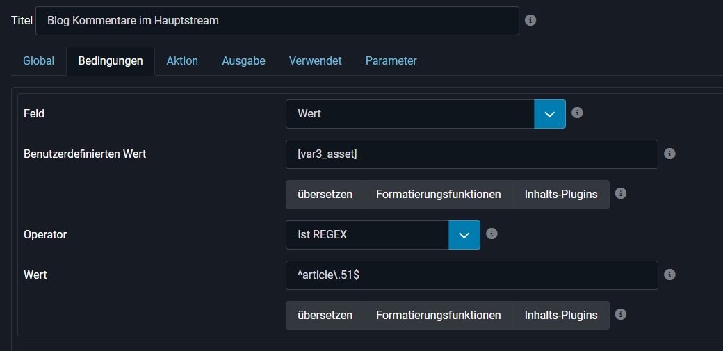 I've already tried several approaches. Additionally, I've used filters in the "Recent Activity" stream, both for assets (article.51 and article.%) and for streams (Articles). Despite this, the article comments aren't appearing in the main stream.